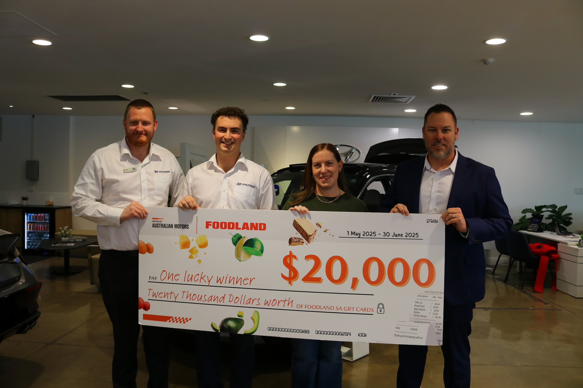 In May and June, The Australian Motors Group gave customers the opportunity to go into the draw to win $20,000 in Foodland SA gift cards, by purchasing a vehicle before June 30th from our Wayville, Morphett Vale and Riverland locations.